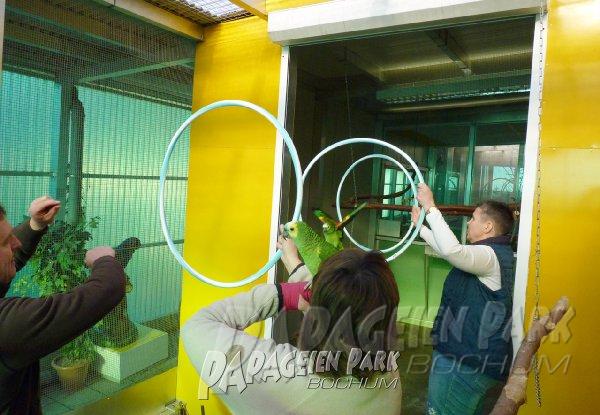 Papageien-Praxistraining im Papageienpark Bochum unter der Leitung von Dipl. Biologin Hildegard Niemann.