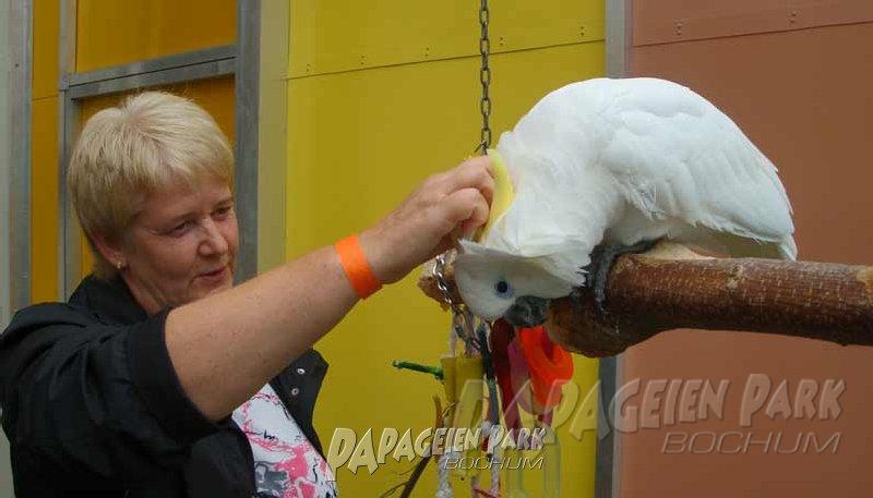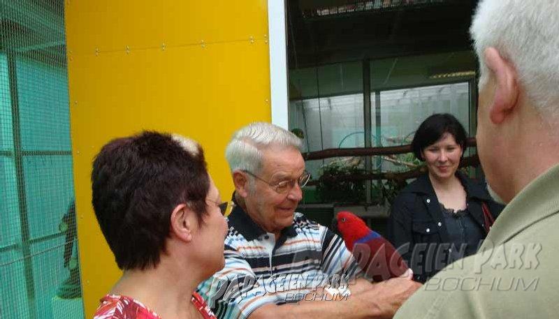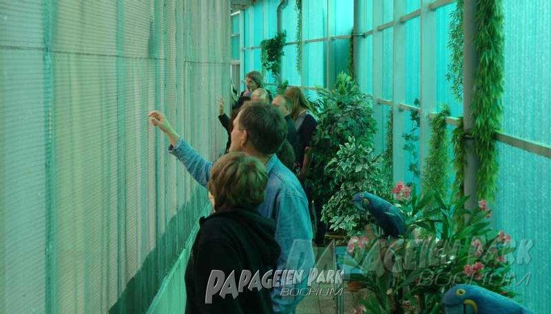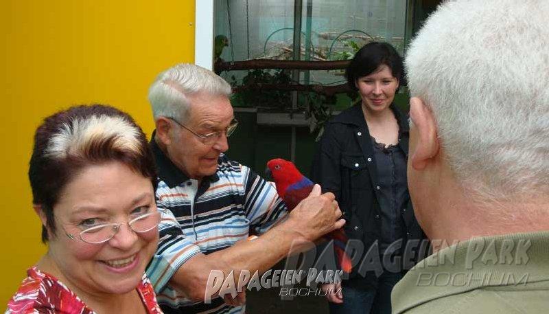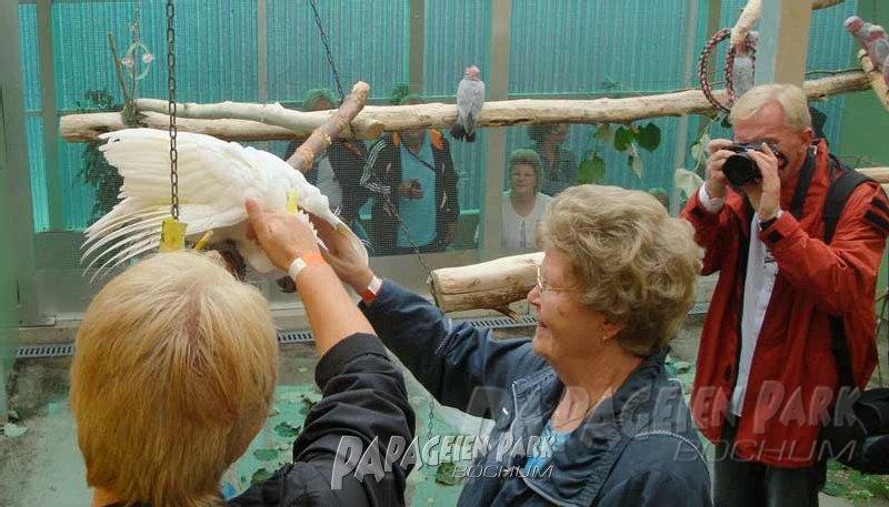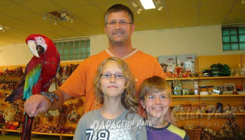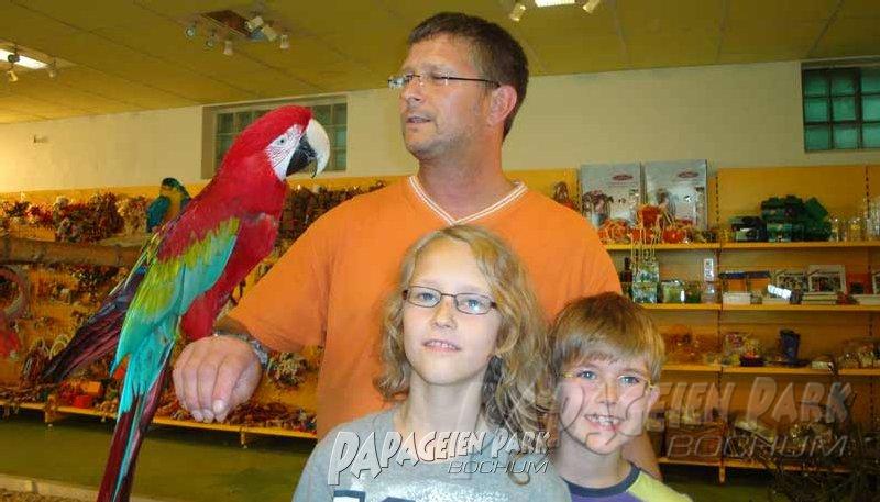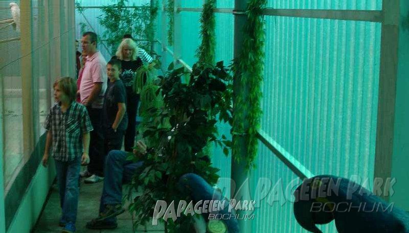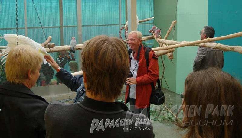 Volles Haus und ein Riesenspaß für vier Generationen beim Familientag, der Dank der komplett überdachten Anlage trotz Regen nicht ins "Wasser" fiel. / Full to bursting at Parrots Park Bochum with four generations enjoying the tame birds. Due to the completely roofed park despite hay rain showers everybody remained dry.
