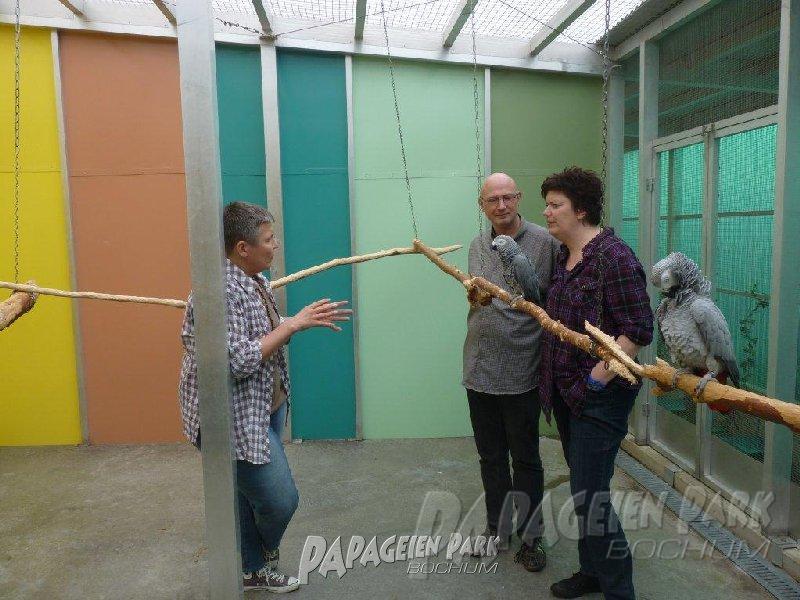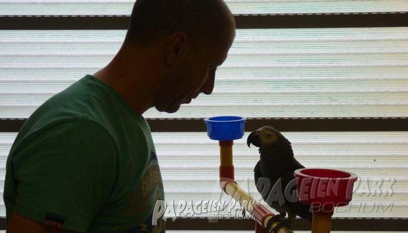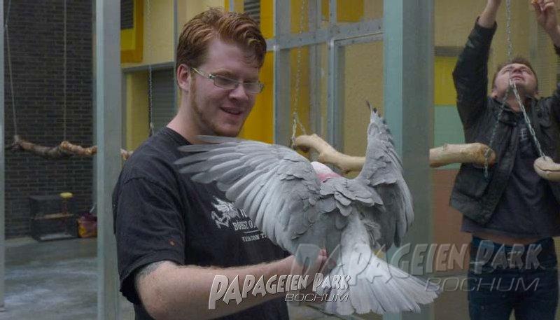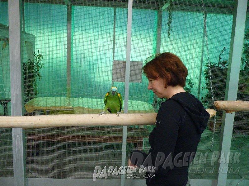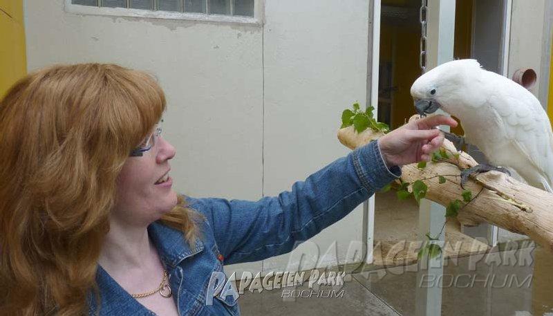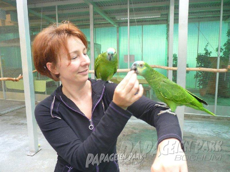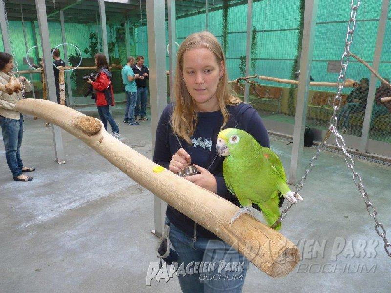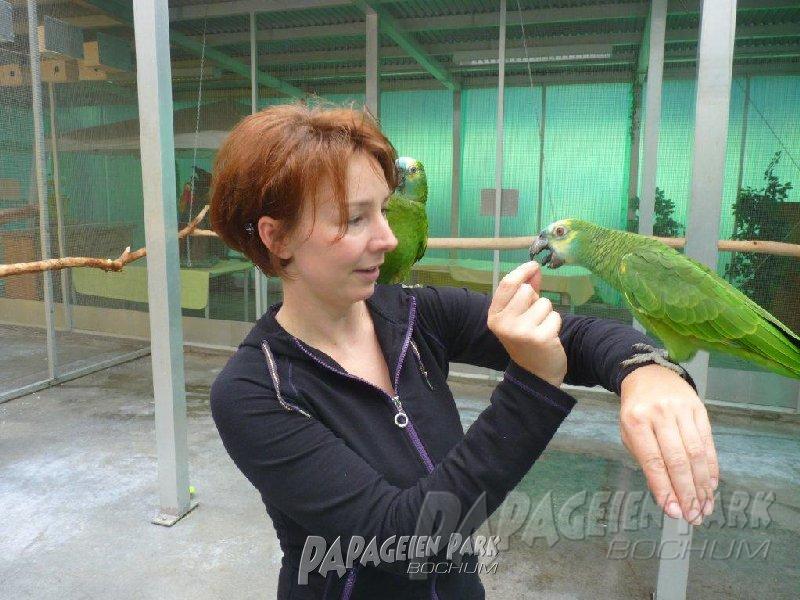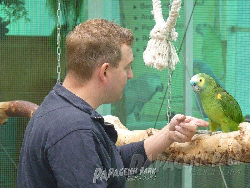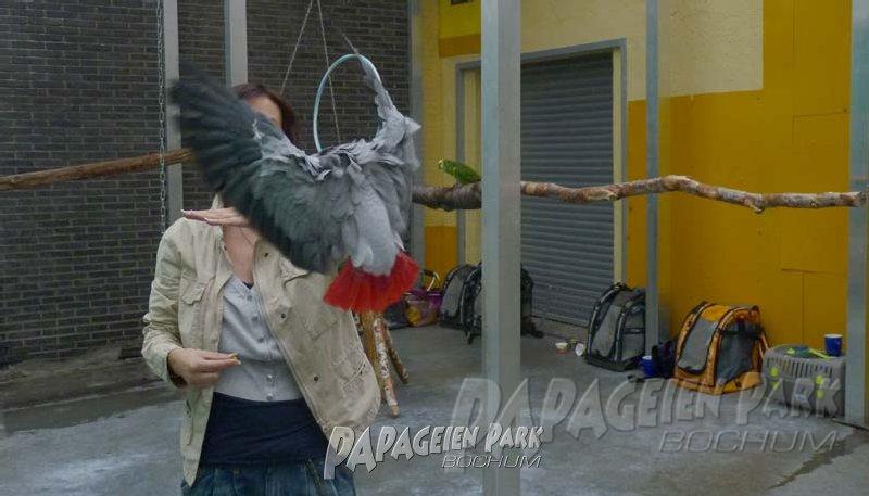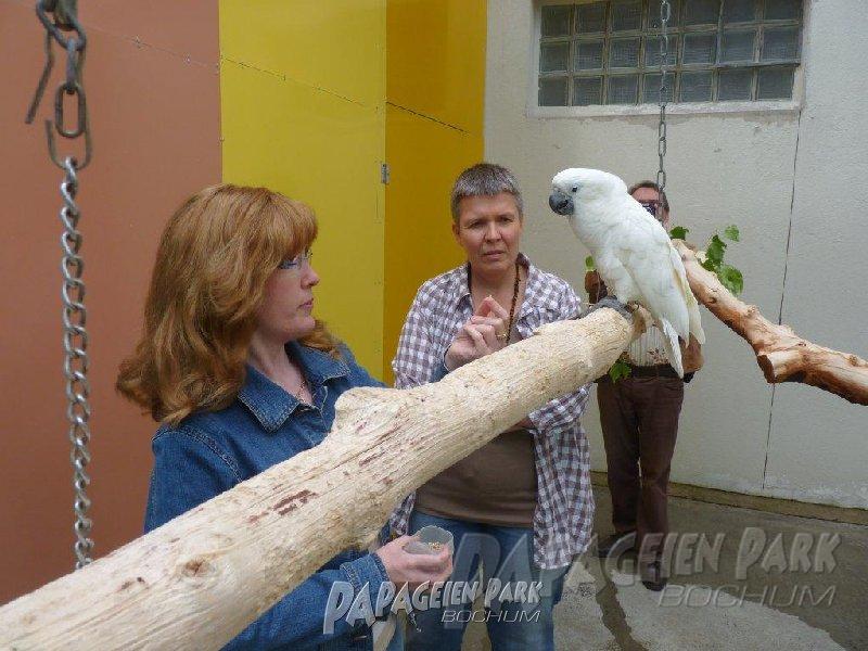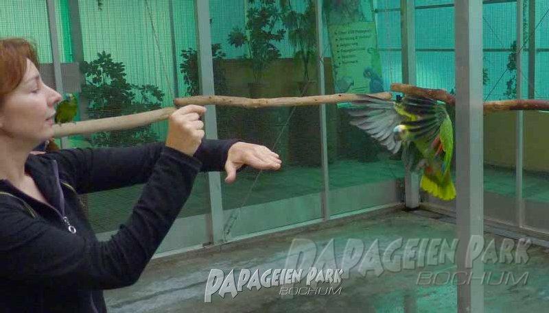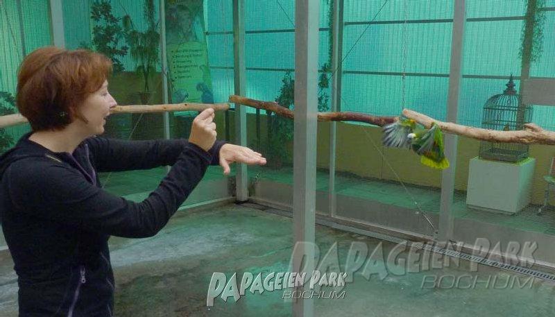 Papageien Praxistraining im Papageienpark Bochum unter der Leitung von Dipl. Biologin H. Niemann. Fotos; Dr. Rainer Niemann.