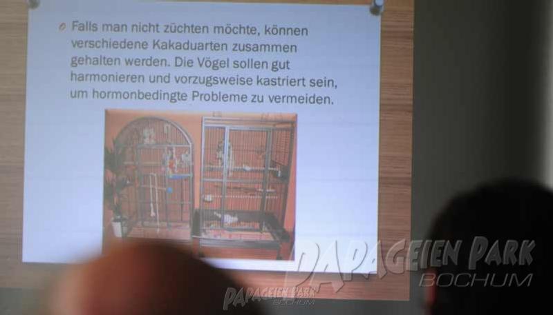 Impressionen eines Workshops - speziell über Kakadus / asiatische & australische Papageien - mit gruppenweiser Beobachtung verschiedener Kakadu-Arten in den Volieren des Papageienpark Bochum