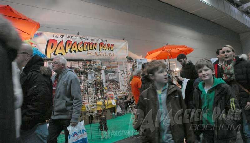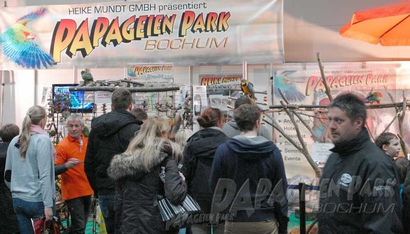Vom 25. - 27.1. 2013 präsentierte der Papageienpark auf seinem Messestand wieder frei sitzende, zahme Papageien. Eine große Attraktion für die Besucher, die in großen Scharen kamen und fotografierten.