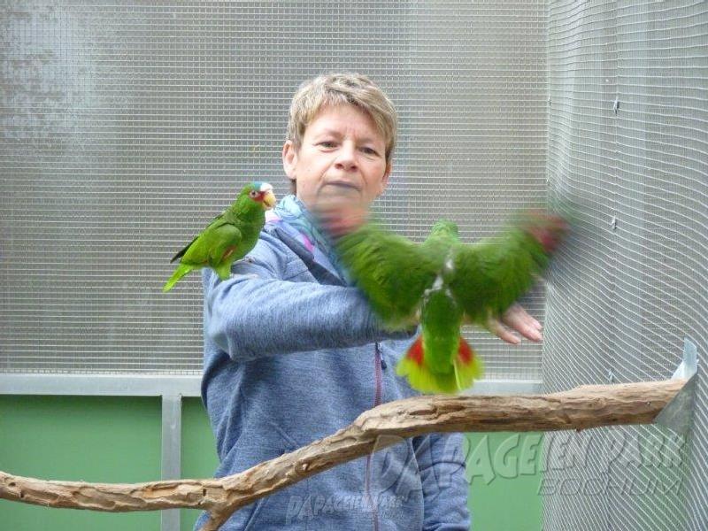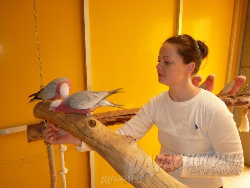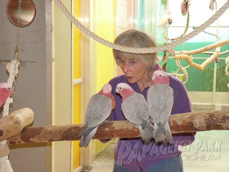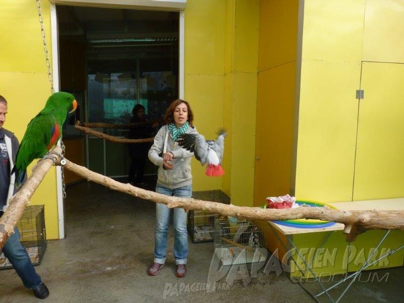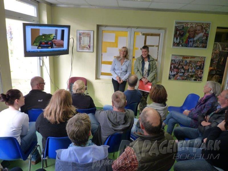 Zum Papageien-Praxistraining kamen engagierte Anfänger und erfahrene Fortgeschrittene Papageienhalter, die mit Ihren Tieren unter der fachkundigen Anleitung von Dipl. Biologin Hildegard Niemann in den Volieren des Papageienpark Bochum trainierten.