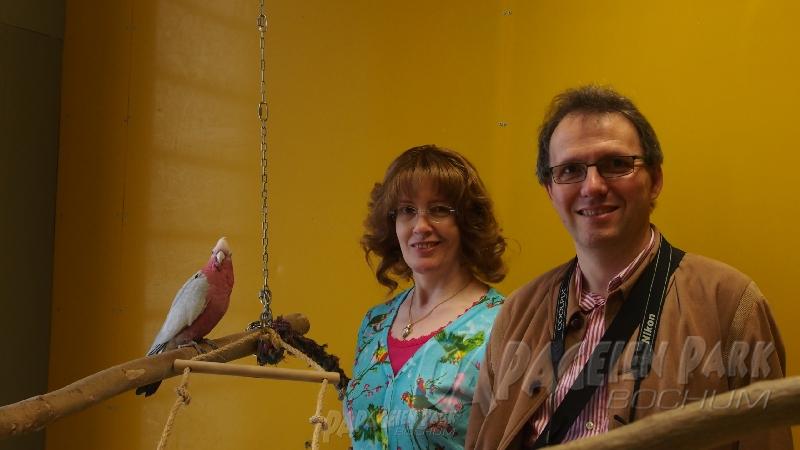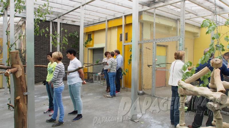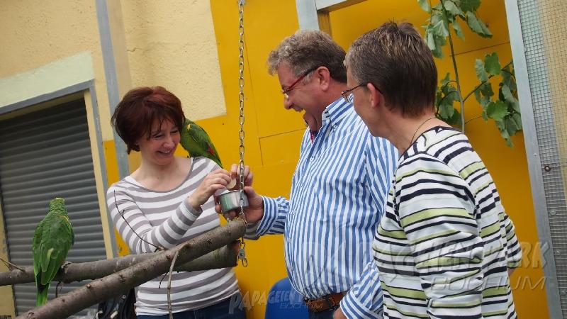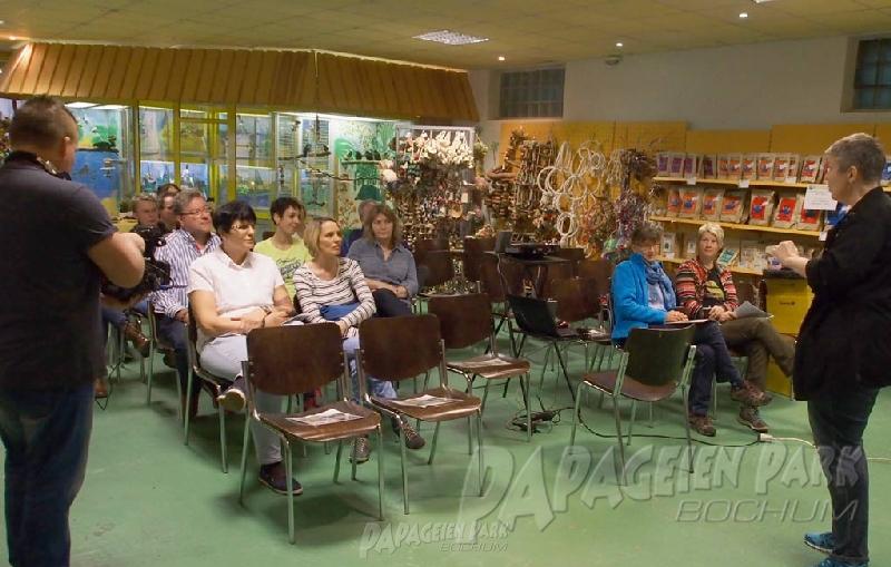 Über bekannte und auch neue Gesichter freuen sich Hildegard Niemann und der Papageienpark beim ersten Papageien-Praxistraining am 9.5.2015 in Bochum.