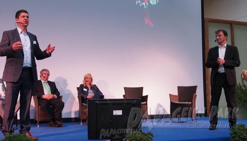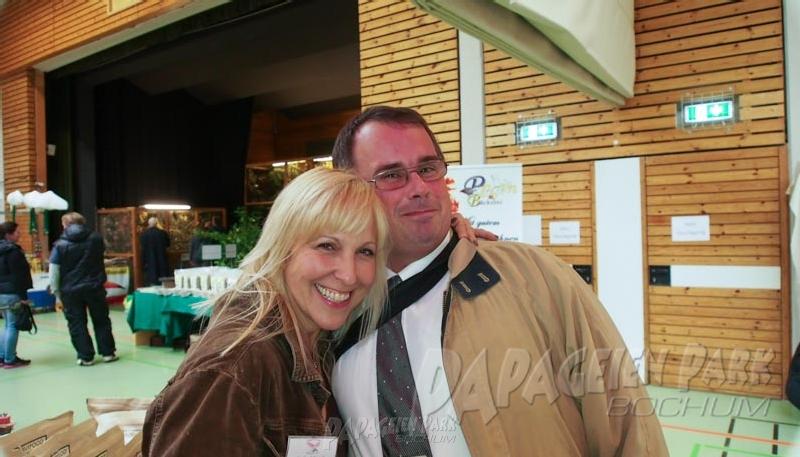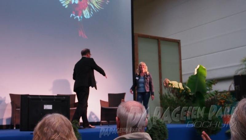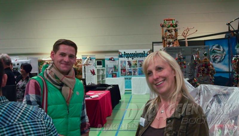 Heike Mundt präsentiert sich und ihren papageienpark Bochum auf der Papageienmesse in Achern.