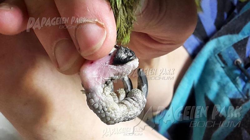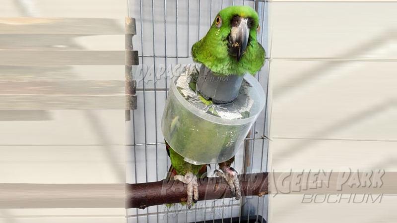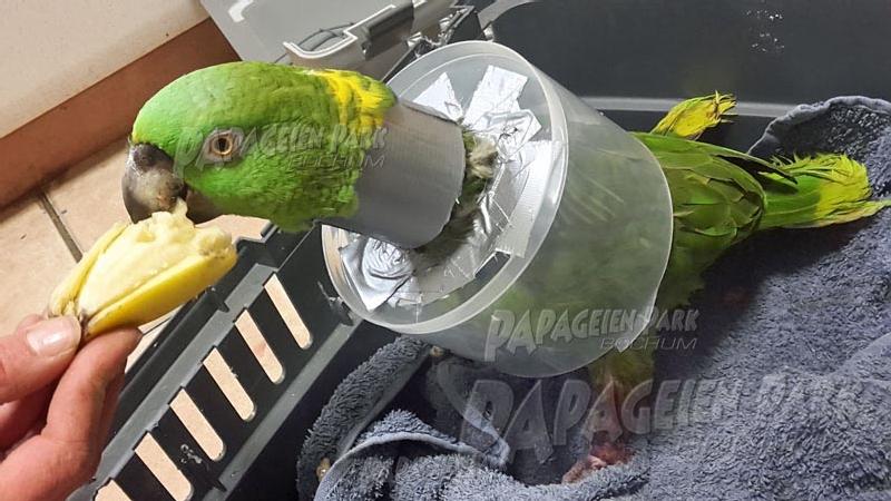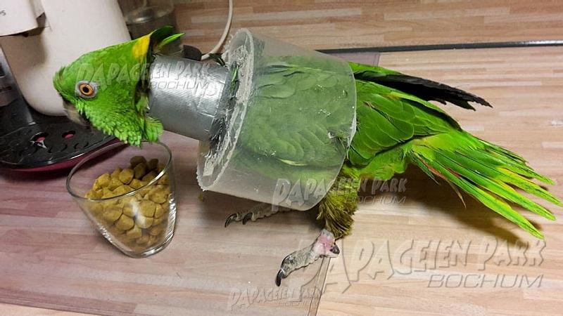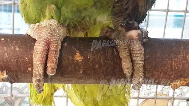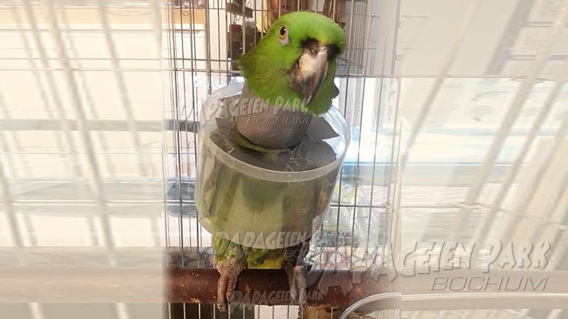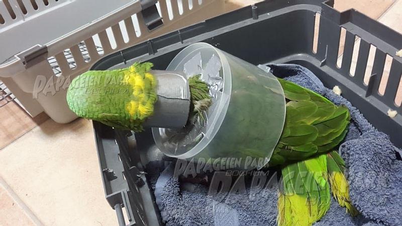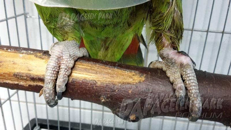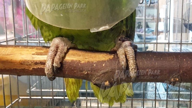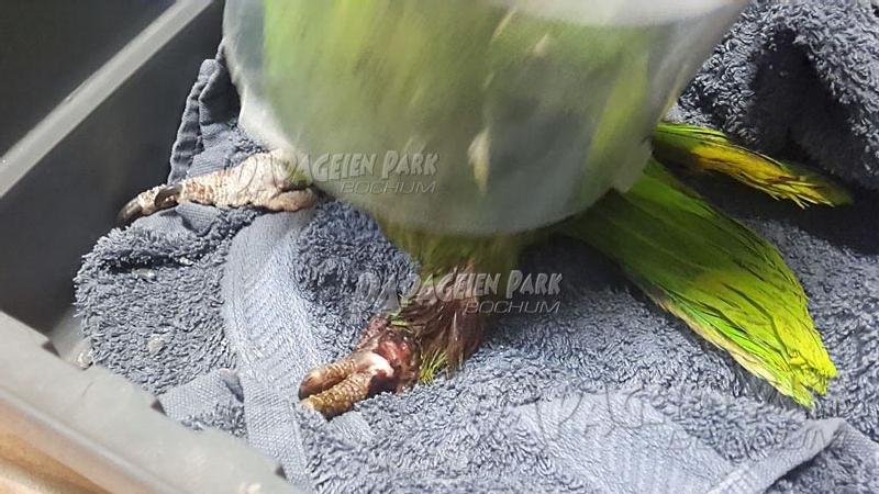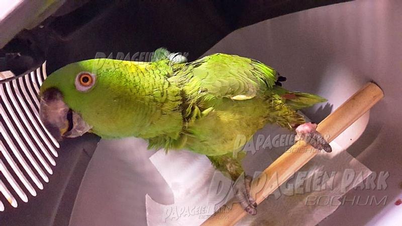 Gelbnackenamazone Coco war nach einer schweren Fußverletzung zur Reha im Papageienpark Bochum. Unser gefiederter Patient konnte zum Glück schon bald mit perfekt verheiltem Fuß nach Hause zurückkehren.