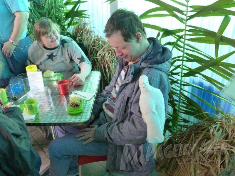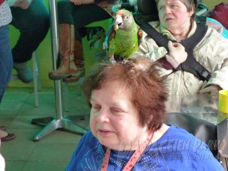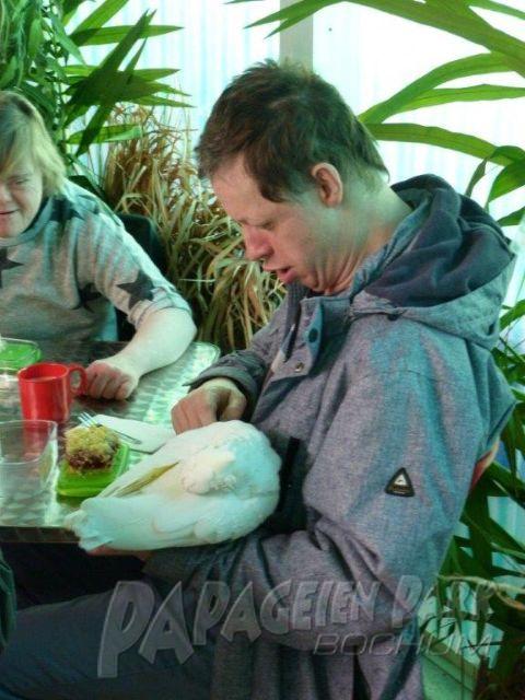 20 Menschen mit Behinderungen, die von der Lebenshilfe Bochum betreut werden, haben das Papageiencafé besucht. Für viele ein besonderes Erlebnis.