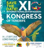 Zum 11-ten Mal findet im Loro Parque auf Teneriffa vom 14. - 17. September 2026 der internationale Papageien-Kongress statt. Zeit, neues zu erfahren, alte Freunde und Bekannte wiederzutreffen und neue Kontakte zu knüpfen. Sicherlich wird es auch wieder viele interessante Themen geben. Der Papageienpark Bochum und Heike Mundt unterstützen und promoten diese Veranstaltung.